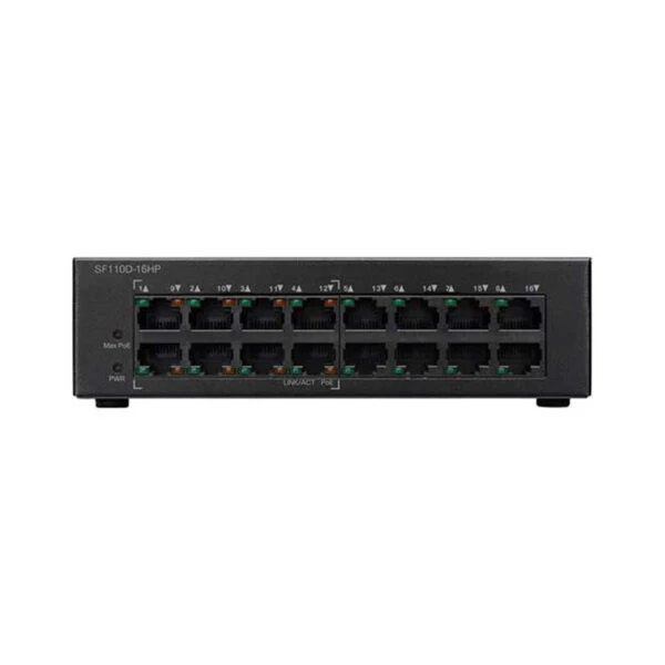 سوئیچ شبکه سیسکو مدل SF110D-16HP یک سوئیچ شبکه غیر مدیریتی است که هم به صورت رومیزی و هم در داخل رک نصب میشود.