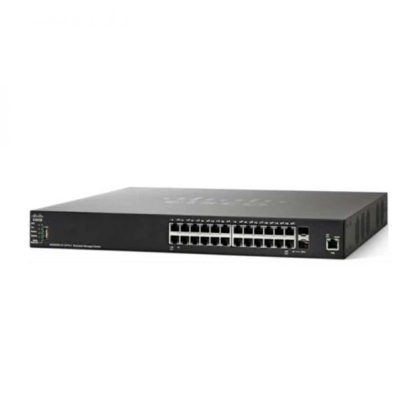 یک سوئیچ قدرتمند از نوع مدیریتی با 24 پورت اترنت از نوع 10/100/1000 مگابیت برثانیه است که در لایه سوم شبکه فعالیت میکند. همچنین این مدل دارای 2 پورت SFP و 2 پورت کومبو از نوع 10GBase است. این محصول از پروتکل IPv6 پشتیبانی کرده و دارای قابلیت VLAN نیز هست. سوئیچ مدیریتی 24 پورت سیسکو مدل SG350X-24 از سیستم عامل های ویندوز ، لینوکس ، یونیکس و مک پشتیبانی میکند. این سوئیچ مجهز به نشانگر با قابلیت نمایش وضعیت روشن یا خاموش بودن دستگاه و همچنین دارای نشانگر با قابلیت نمایش وضعیت پورت های شبکه است.