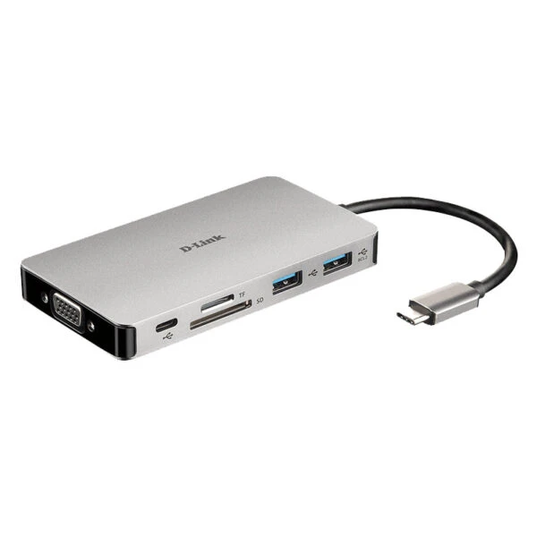هاب ۹ پورت USB-C دی-لینک DUB-M910 با پورتهای HDMI، VGA، اترنت، کارتخوان SD/microSD، USB 3.0 و USB-C، مناسب برای گسترش قابلیتهای دستگاههای شما.