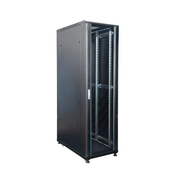 دربهای کناری رک به صورت مشبک طراحی شده اند که وظیفه تهویه هوای داخل رک را بر عهده دارد. این رک مستحکم 4 پایه ضد زلزه با قابلیت تنظیم ارتفاع دارد. همچنین این رک قابلیت نصب فن و نصب درب پانچی برای جلو و عقب را دارد.