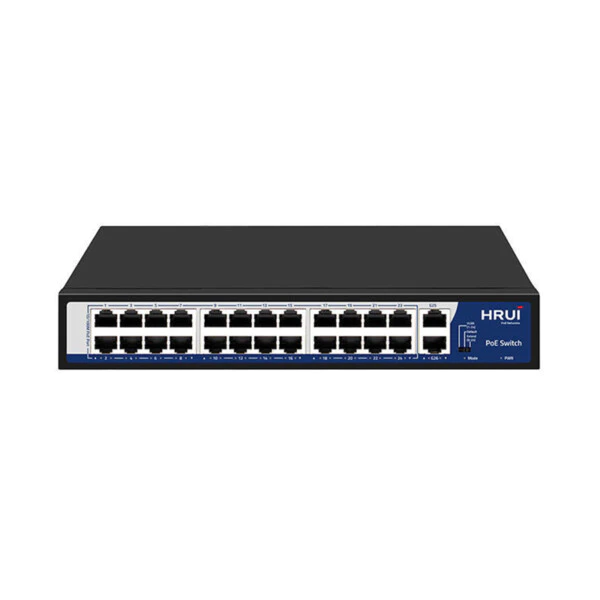سوئیچ 24 پورت HRUI HR900-AFG-82NS با توانایی پشتیبانی از POE بوده و همچنین قابلیت گیگابایتی نیز دارد که باعث انتقال دیتاها و اطلاعات مورد نظر شما به دوربین و سیستم عامل ها میشود.