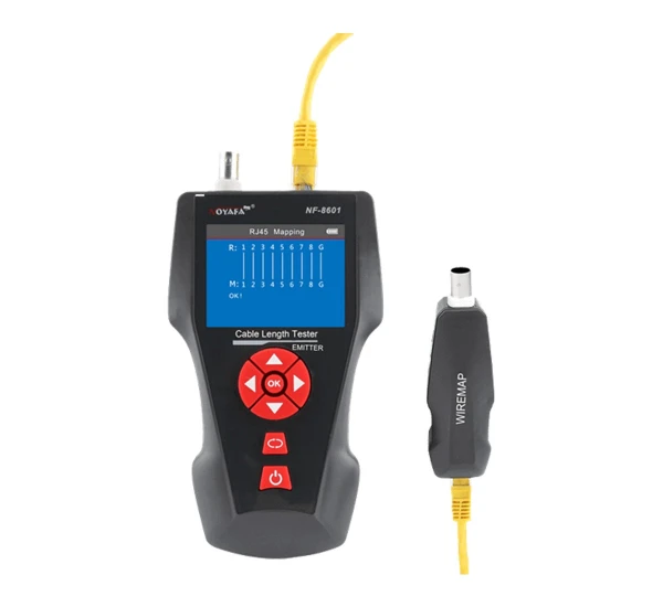 NF-8601 قادر به تشخیص خودکار سرعت لینک (10/100/1000 Mbps) و تست کامل کابلکشی (Wire Map) برای کابلهای CAT5e، CAT6 و CAT6A است. این ویژگی برای عیبیابی شبکههای گیگابیتی ضروری است. - قابلیتهای پیشرفته تست کابل