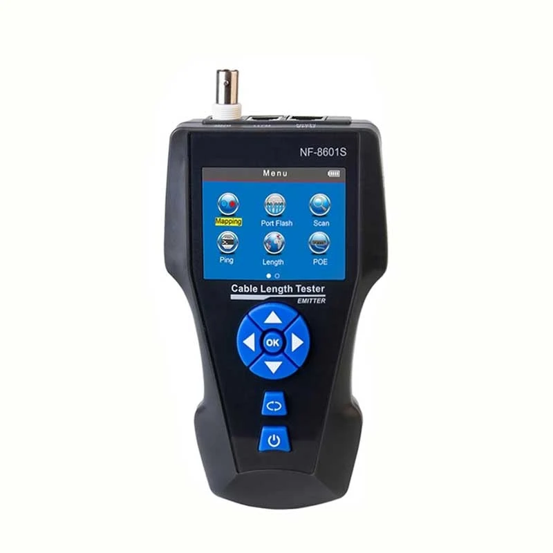 تستر کابل NOYAFA NF-8601S با اندازه‌گیری طول کابل، تست PoE، تست Ping، ردیابی کابل، پشتیبانی از Cat5e/6/7 برای RJ45/RJ11/BNC