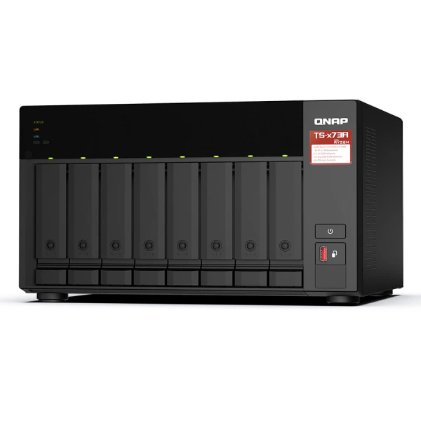 دو اسلات M.2 NVMe SSD برای فناوری Qtier و حافظه پنهان SSD قادر است ذخیره سازی ثابت را بهینه سازی کند . این دستگاه از QTS و QuTS hero پشتیبانی می کند و به کاربران این امکان تغییر سیستم عامل بر اساس نیازهای خود را می دهد. استوریج کیونپ مدل QNAP TS 873A 8G از پردازنده چهار هسته ای AMD Ryzen V1000 سری V1500 با فرکانس 2.2گیگاهرتز با حداکثر 64 گیگابایت رم (حافظه ECC پشتیبانی می شود) و دارای پورت USB 3.2 Gen 2 برای سرعت تا 10 گیگابیت بر ثانیه است.
