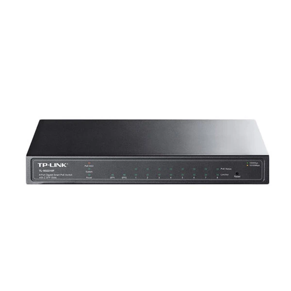 ساخت شرکت تی پی لینک دارای 8 پورت RJ45 از نوع 10/100/1000MBPS و 2 درگاه جداگانه SFP فیبرنوری بوده و این پورت ها دارای فناوری Auto-Negotiation/Auto MDI/MDIX است.